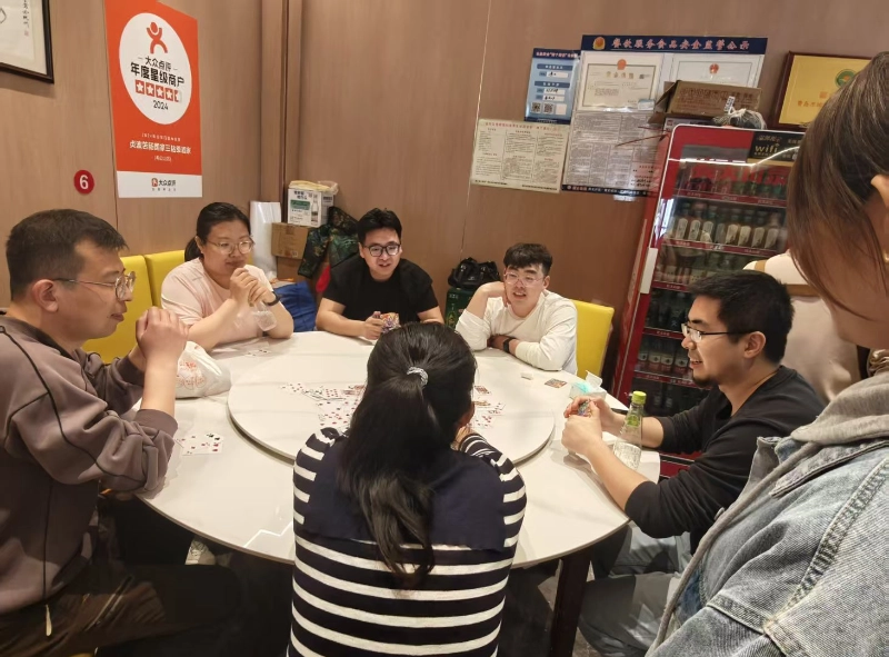 După o scurtă odihnă la prânz, la 12:30, ne-am mutat la hotel și am început o interesantă competiție Guandan. Fiind un proiect de team building iubit de toată lumea, Guandan nu numai că testează gândirea logică personală, dar acordă și mai multă atenție cooperării tacite dintre parteneri - „O carte bună nu concurează pentru moment, iar înțelegerea tacită a partenerului este mai importantă decât eroismul personal”, care este exact semnificația formării echipei Guandan.